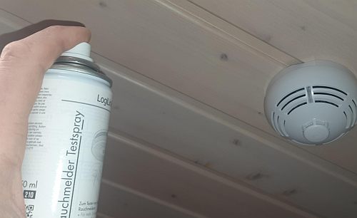 Ob der Rauchmelder auch durch Erkennung von Rauch oder anderen die Sensorkammer eintrübenden Partikeln Alarm auslöst, zeigt nur der Test mit einem Rauchmeldertestspray.