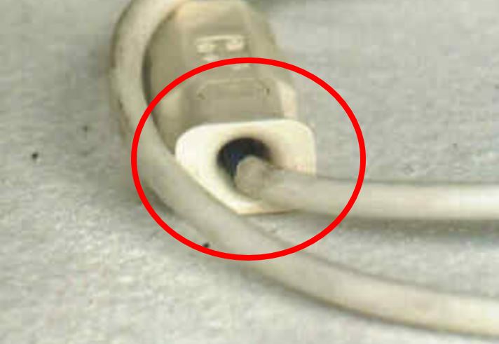 - Markieren Sie oder merken Sie sich die Position, wie der Stecker in der Steckdose oder der Verlängerungskupplung eingesteckt war. (Der Stecker könnte auch 180° gedreht eingesteckt werden, deshalb ist die Position wichtig.)