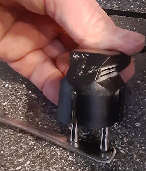 • Ziehen Sie den Netzstecker aus der Steckverbindung und halten sie beide Kontakte gleichzeitig gegen einen blanken Metallgegenstand. Dieses ist sinnvoll, um die evtl. Restspannung im Gerät zu entladen. (eingebauter Funkentstörkondensator)